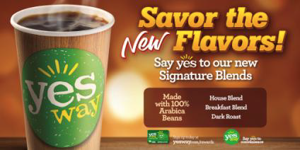 Yesway’s three new Signature Blends – House Blend, Breakfast Blend, and Dark Roast – were deemed “customer’s choice”, having been selected by Yesway customers after extensive inmarket taste testing. All varieties are made with 100% Arabica beans, and brewed fresh, fast and enjoyable at Yesway stores every day.